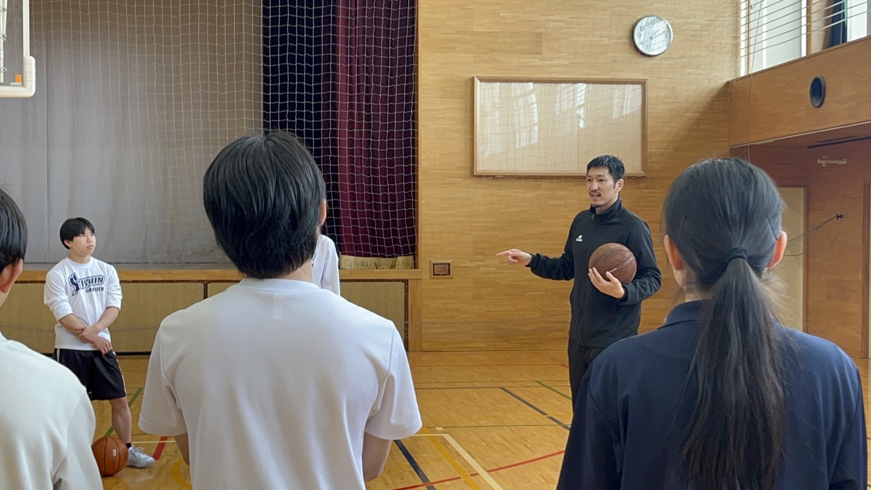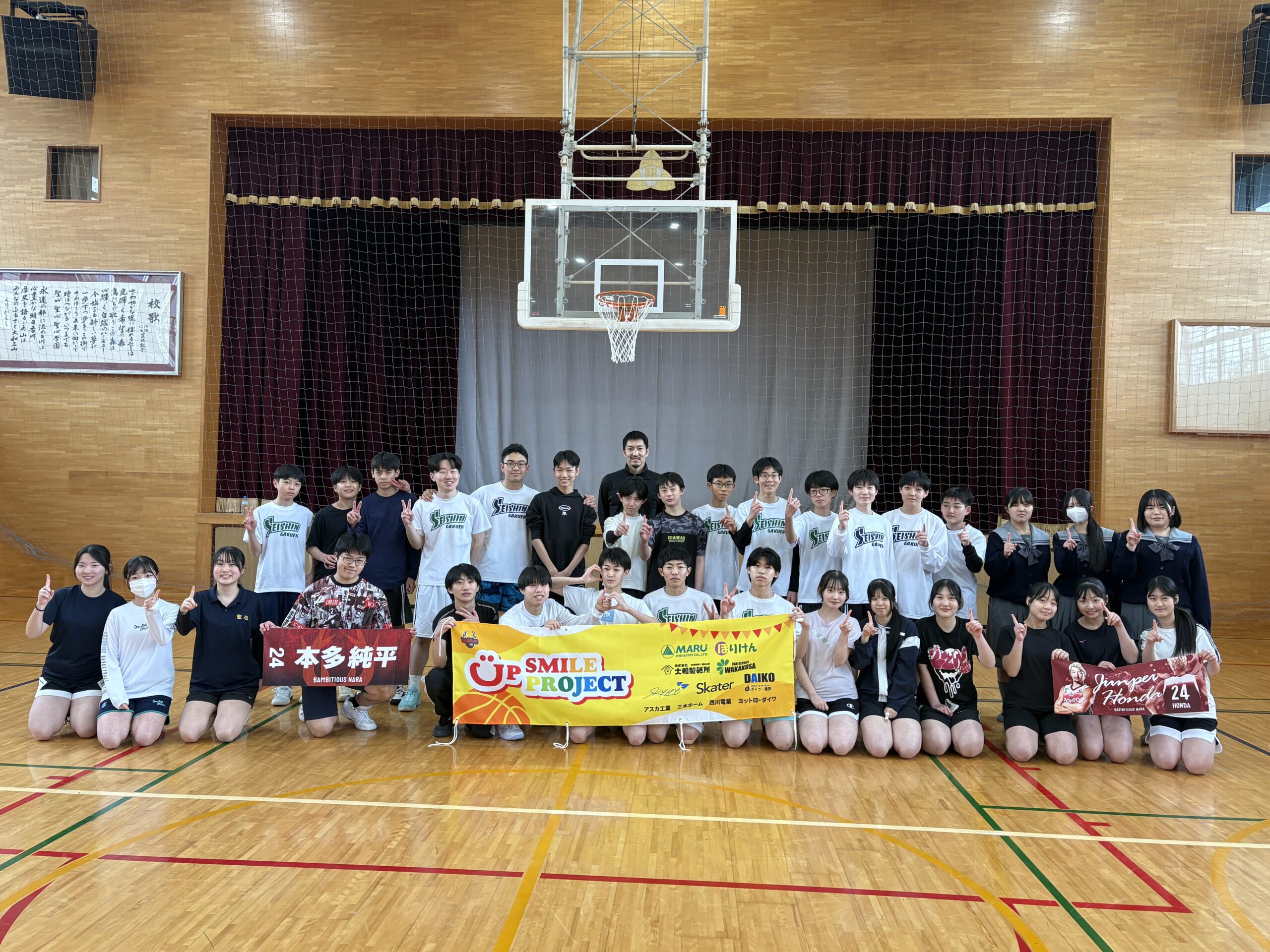 先日、地元プロバスケットボールチーム# バンビシャス奈良 より #本多純平選手 にご来校いただき、男子・女子バスケットボール部へご指導をしていただきました。