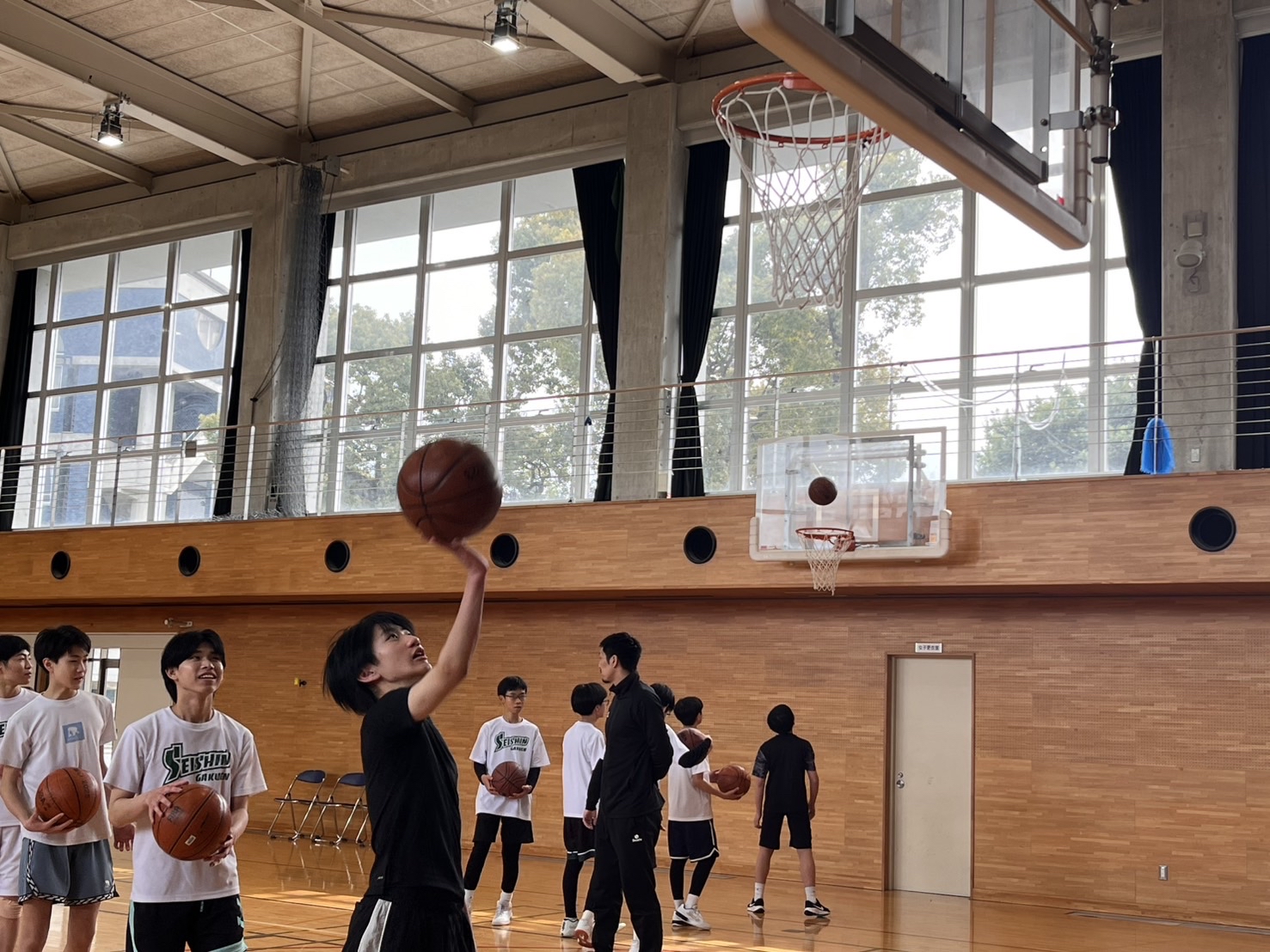 プロ選手から直接学べる貴重な時間に、部員たちは終始目を輝かせ、バスケットボールの楽しさや奥深さを改めて感じることができました。