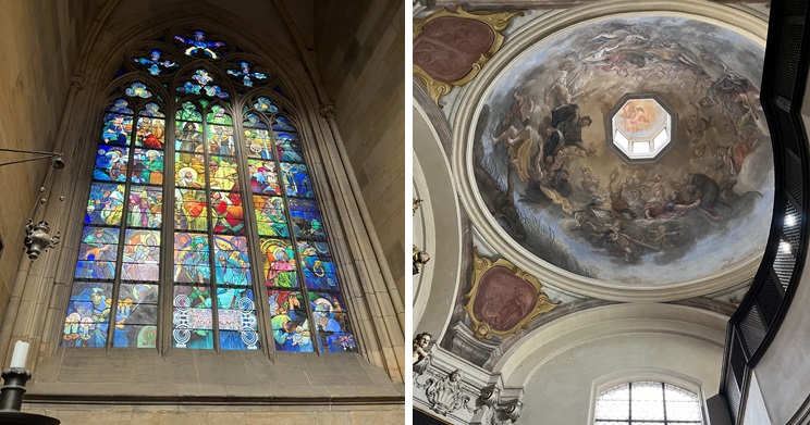 現在プラハは11月20日(水)の18時10分、天候は雪です。今日は、プラハ城の聖ヴィート教会を中心に王宮などを観光しました。ステンドグラスが美しく、特にミュシャの描いたステンドグラスが一際輝いていたように思います。