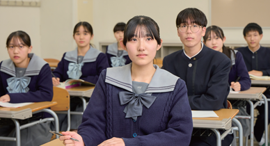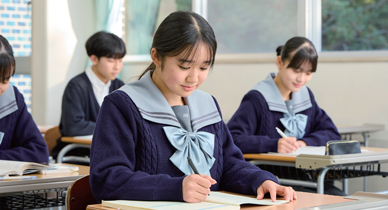 中等教育学校という真の6年一貫の”学び “のシステムの中、 多彩な角度から生きた学びの場を提供し、心身ともに健やかで、知・徳・体のバランスのとれた豊かな人間性を”育み”ます。