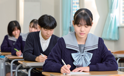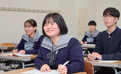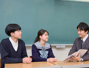 「分からないところは残さない」をモットーに、授業や学習の疑問に納得いくまで答えるのはもちろん、進路の悩みに応える担任との面談、理解度に合わせた個別添削指導など、私立少人数学校ならではの充実のサポート体制でとことん生徒と向き合い、学ぶ意欲の向上をはかります。