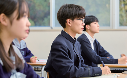 本校は、英数Ⅰ類・英数Ⅱ類の2コースですが、中等1・2年の数学において、数学検定級に合わせて3~4クラスに分け、成績上位の生徒には発展的な問題を、改善の余地のある生徒には単元の基本からと、それぞれの生徒に合わせた授業を実施しています。